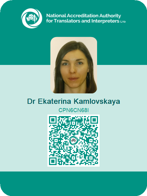 Я Екатерина Камловская - квалифицированный переводчик NAATI (Национальный орган по аккредитации устных и письменных переводчиков, Австралия) и буду рада помочь вам с переводами с русского на английский и с английского на русский.